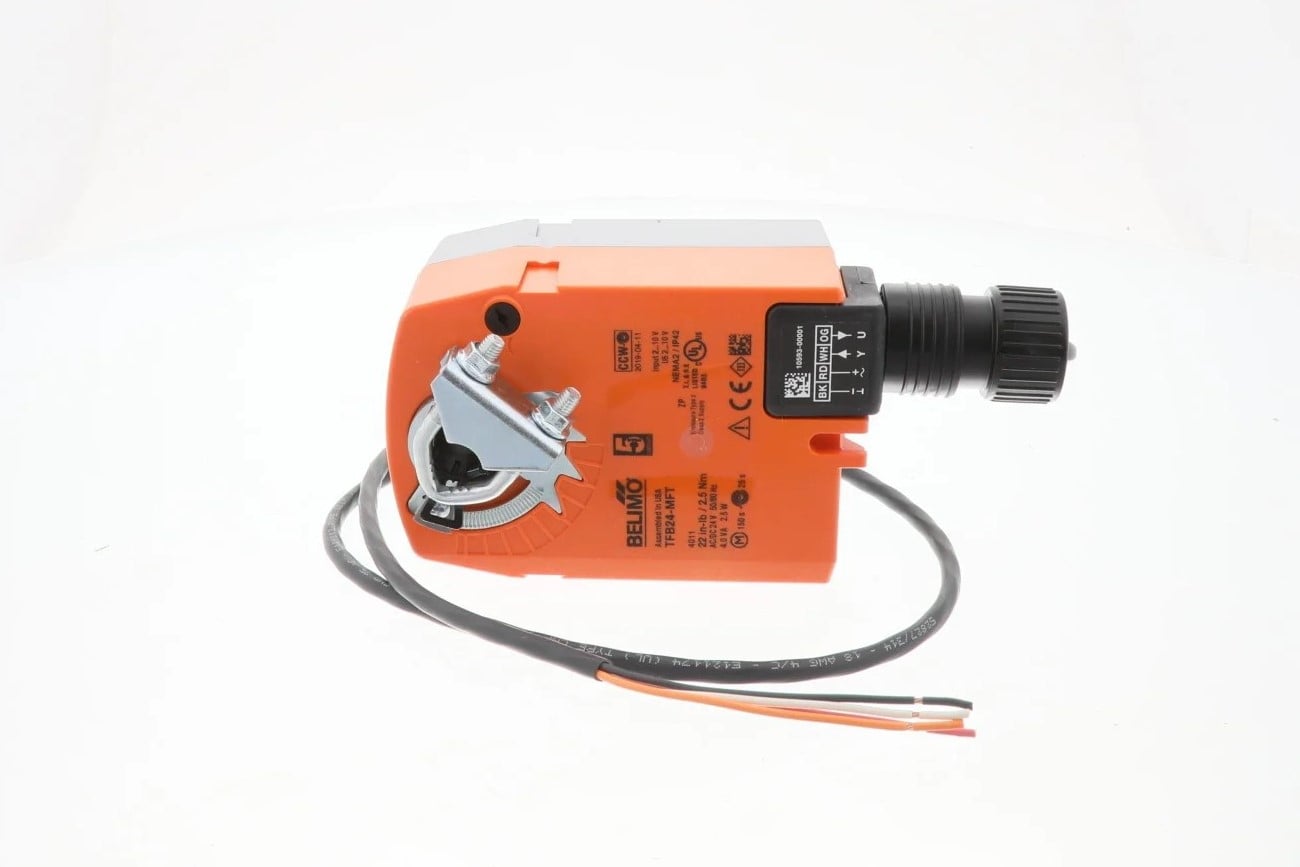 The York 027 04299 002 (Belimo TFB24-MFT) is a compact, spring-return damper actuator designed for fail-safe modulation in commercial HVAC systems. Utilizing Multi-Function Technology (MFT), this actuator provides 22 in-lb of torque and offers programmable control settings to meet specific application requirements. Its robust design ensures reliable performance and positive close-off for dampers up to approximately 5.5 square feet.