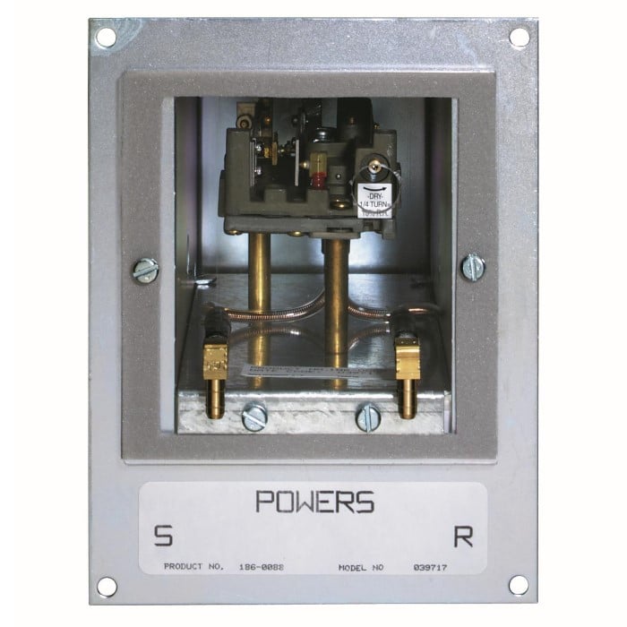 This duct mounted 186 Pneumatic Hygrostat is reverse acting and includes temperature compensation, a sensitive hygroscopic membrane and a control range of 20% to 90% relative humidity. Cover and wall plate are included.
