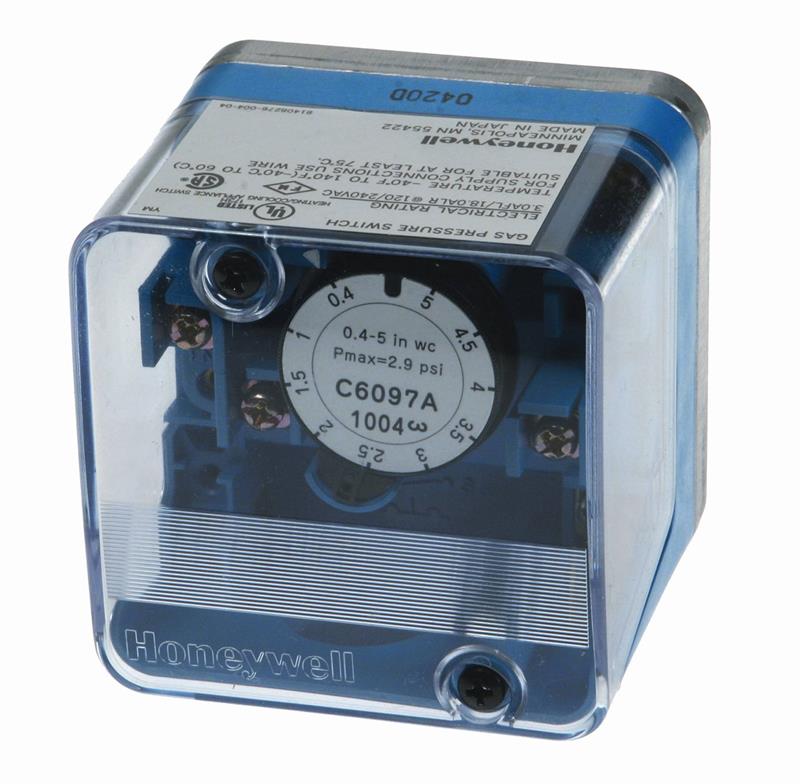 The Honeywell C6097A1004 pressure switch, air / gas, 0.4″ – 5″ W.C Auto Reset, 1/4″ female NPT