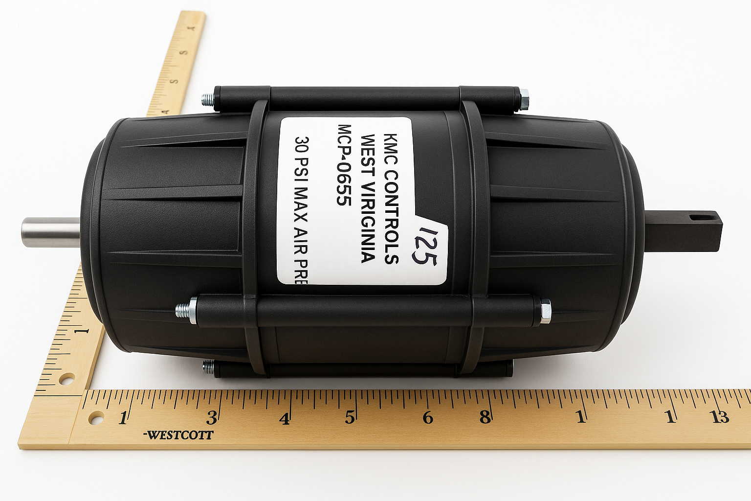 The KMC Kreuter MCP-0655 is a bare pneumatic actuator with a 6-inch linear stroke, designed for damper, butterfly valve, or variable vane control in HVAC systems. It operates in the 8-13 PSI control air range and is offered in a bare configuration (no external linkages or brackets). This actuator weighs approximately 15 lbs and has physical dimensions of 15 × 7 × 7 inches. (apexcontrols.com) Apex Controls