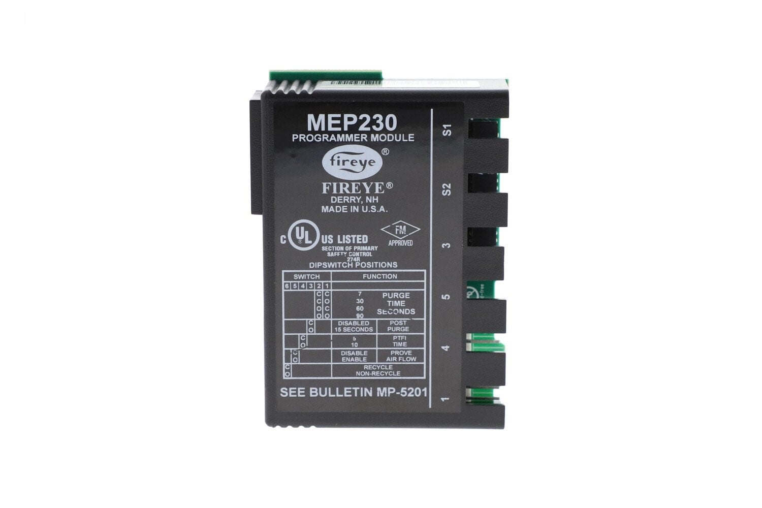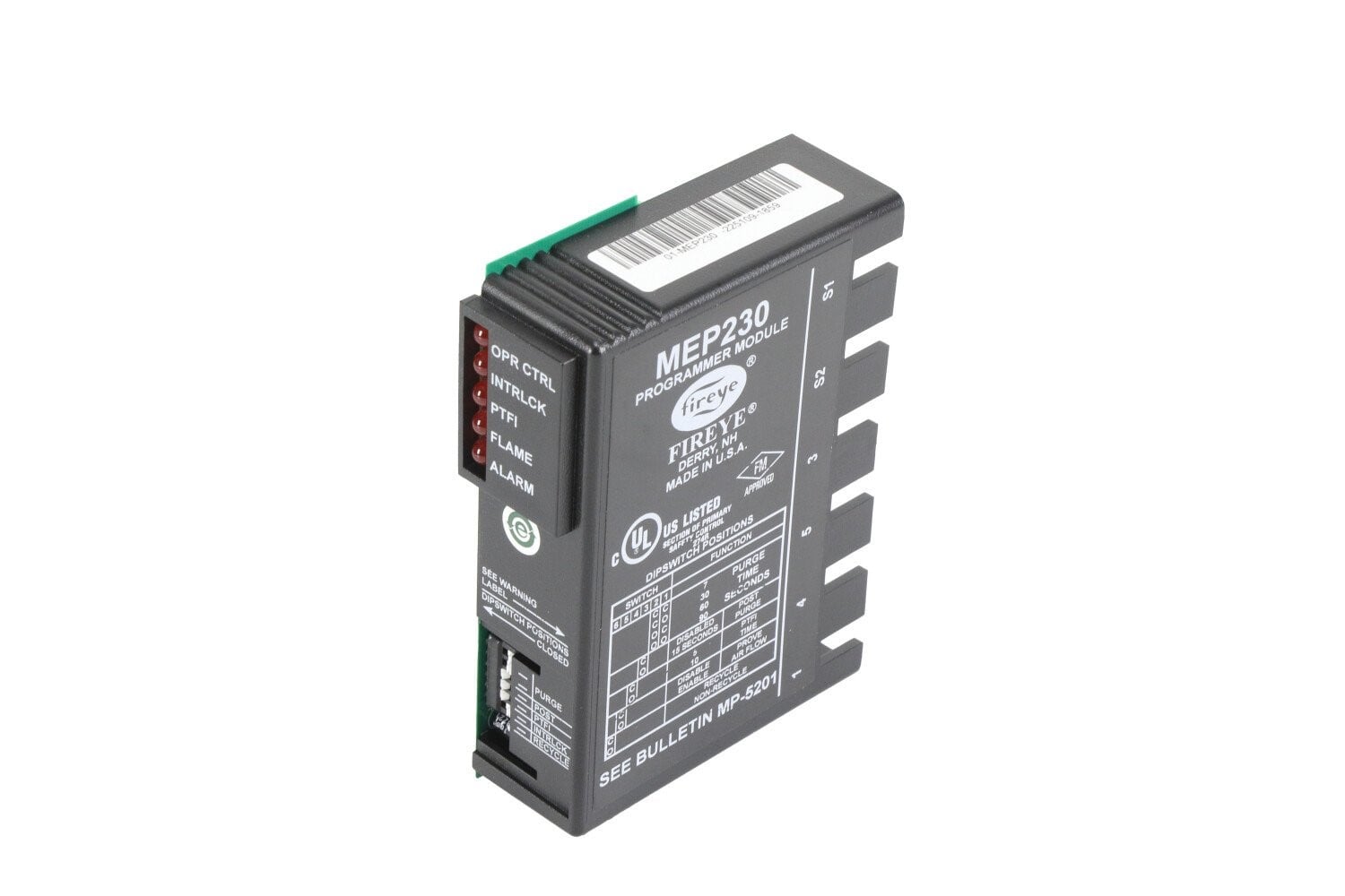 The Fireye MEP230 Programmer Module is a microprocessor-based component used in the Fireye MicroM Flame Safeguard System. It provides the complete burner sequencing logic for safe start-up, flame supervision, and shutdown of commercial and industrial burners.