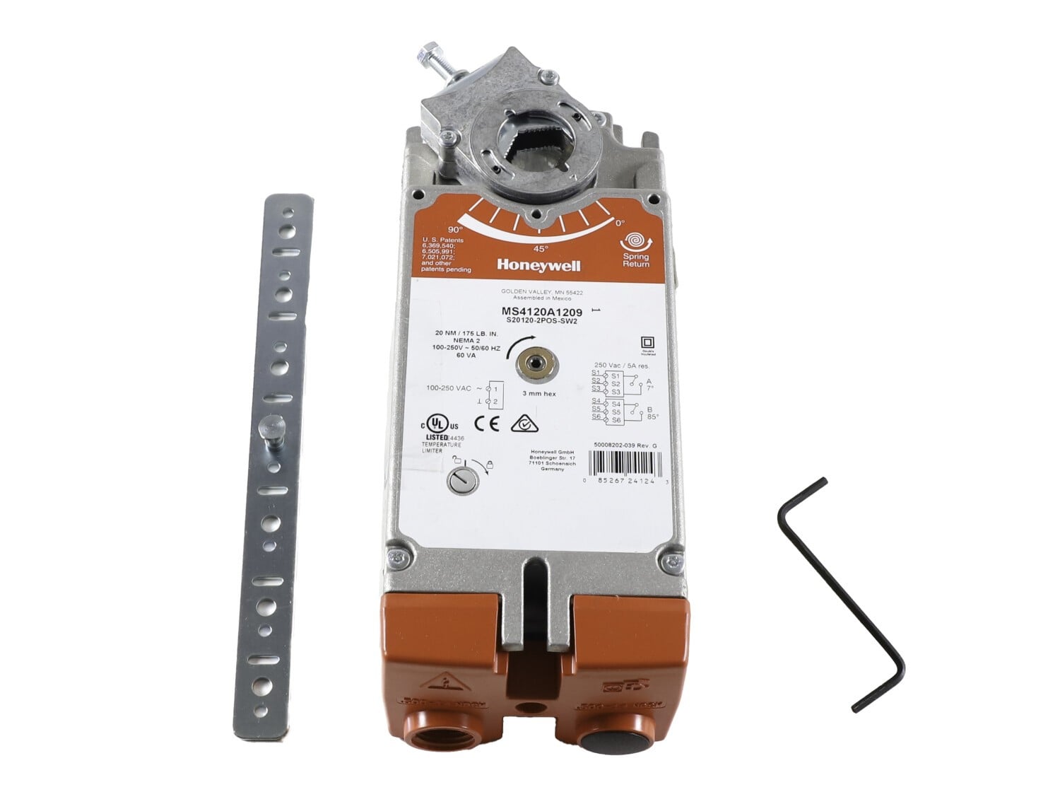 THE HONEYWELL MS4120A1209 Damper Actuator, Spring RETURN, 175 LB-IN (20 NM), TWO POSITION Control, 2 INTERNAL AUXILIARY SwitchES, 100-250 VAC, 50/60 HZ (S20120-2POS-SW2)