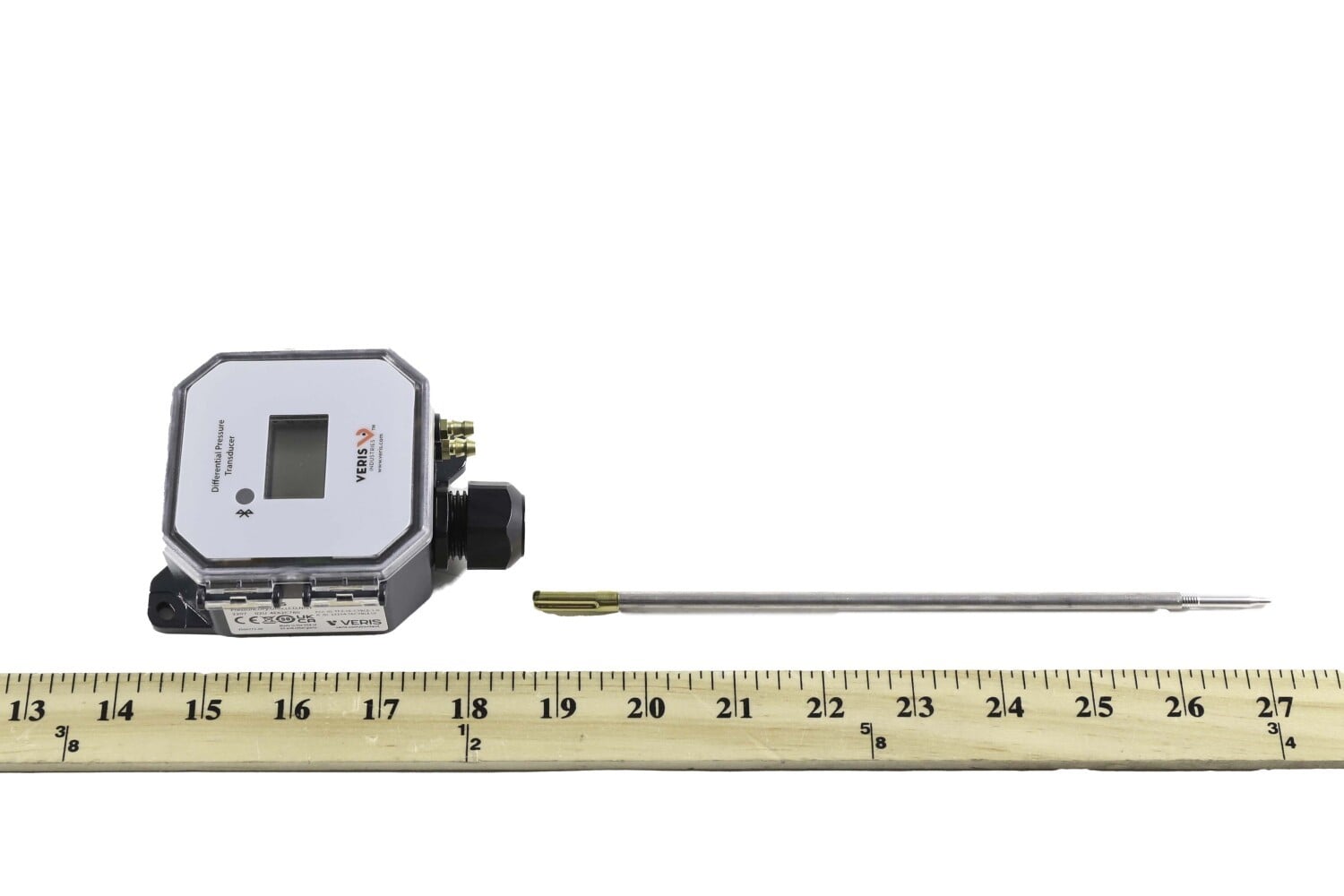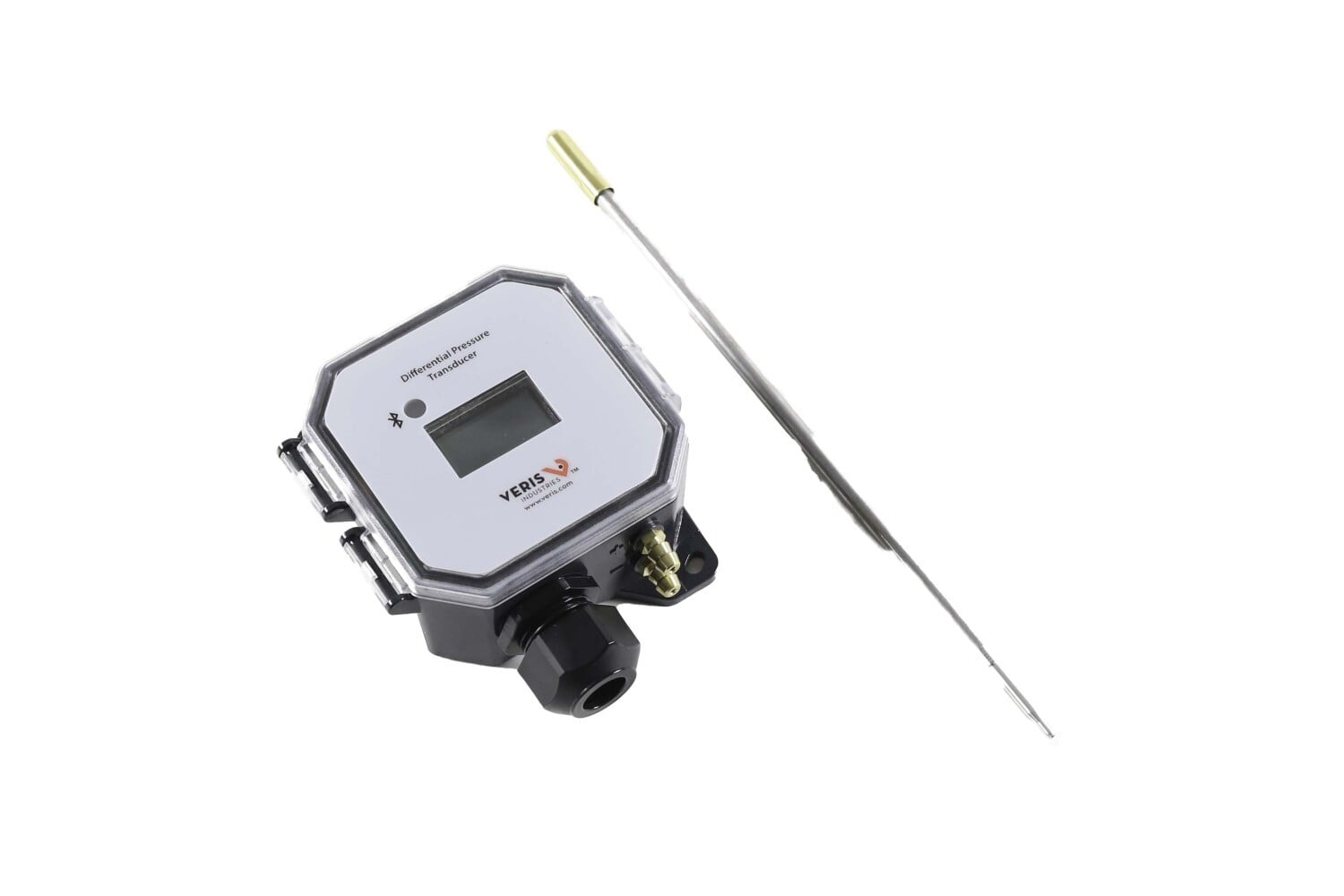 The Veris PX3ULN05 pressure transducer, dry, universal, LCD/Digital. Monitors duct and room pressure in commercial buildings (replaces PXULN05S)