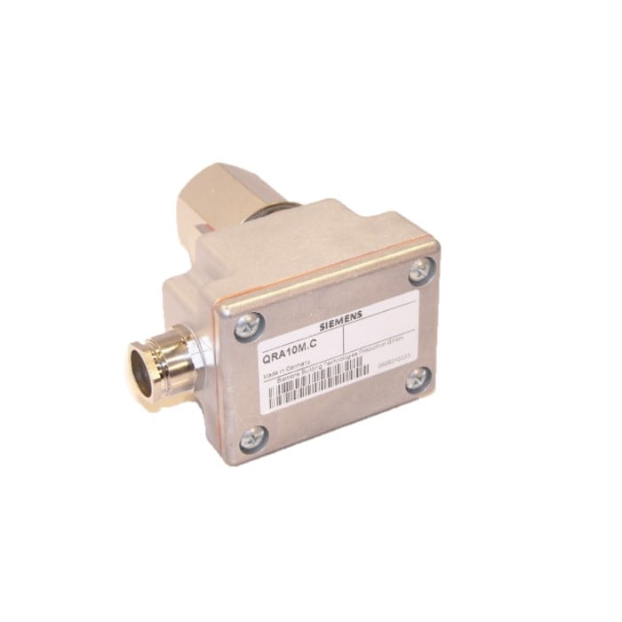 The Siemens QRA10M.C is a high-sensitivity ultraviolet (UV) flame detector designed for the supervision of gas and oil flames, as well as for ignition spark proving. Housed in a rugged die-cast aluminum enclosure, this sensor is engineered to detect the UV radiation emitted by flames to generate a reliable flame signal. It is a critical safety component used in conjunction with Siemens burner controls to ensure secure and efficient combustion processes in industrial and commercial environments.