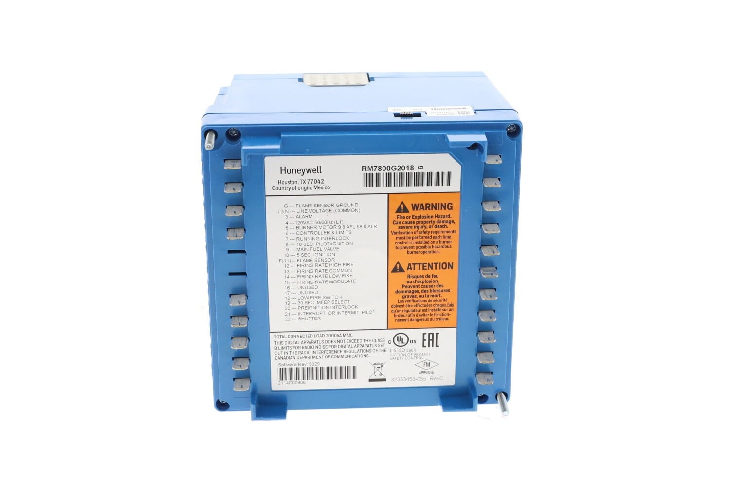 The Honeywell RM7800G2018 is a modular burner control unit in the 7800 Series. It offers full safety sequencing, diagnostics, and modular expansion for modern burner systems. With support for features such as Low Fuel (LF) staging, “full” mode operation, and integration with peripheral modules (displays, amplifiers, reset modules), it’s built for flexibility and reliability in industrial and commercial applications.