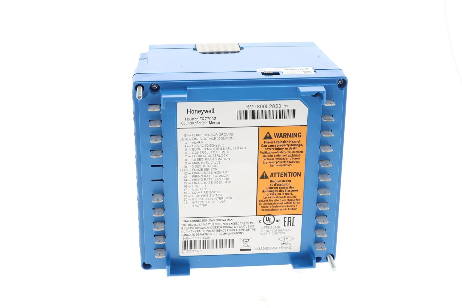 The Honeywell RM7800L2053 is a modular burner control belonging to the 7800 series. It supports advanced burner sequencing (Full, LHL, LF / HF modes), includes safety features such as proven purge, and is compatible with peripheral modules (displays, amplifiers, sensors). This model is optimized for installations requiring programmability and diagnostic visibility in modern combustion systems.