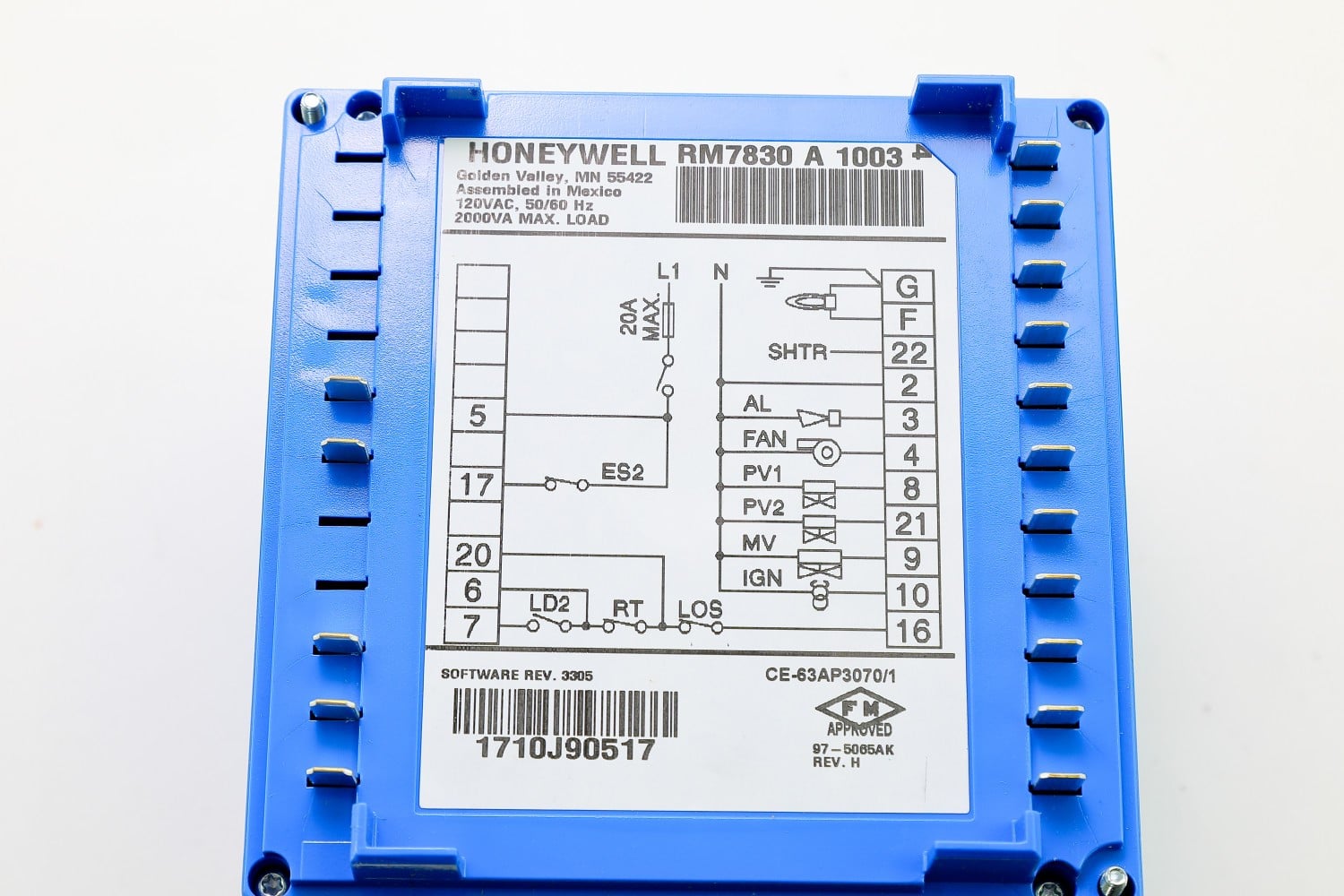 The Honeywell RM7830A1003 Burner Control 120V, 50/60 HZ. 2 SEC. POSTPURGE.