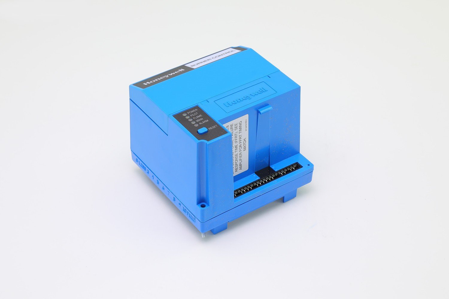 The Honeywell RM7895C1012 Burner Control 120V, 60 HZ, INTERRUPTED Pilot, 10 SEC MAIN Flame ESTABLISHING PERIOD, DELAYED MAIN Valve.
