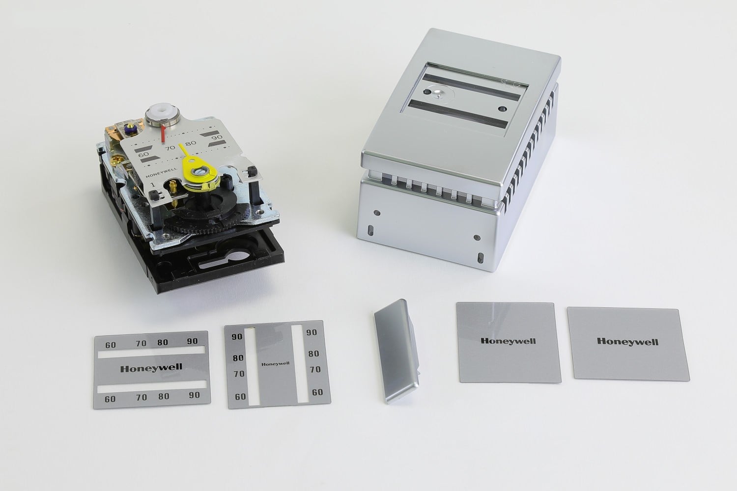 THE HONEYWELL TP970B2182 REVERSE ACTING Thermostat 60F TO 90F THROTTLING RANGE 2F TO 10F SATIN CHROME Cover TRADELINE Kit.