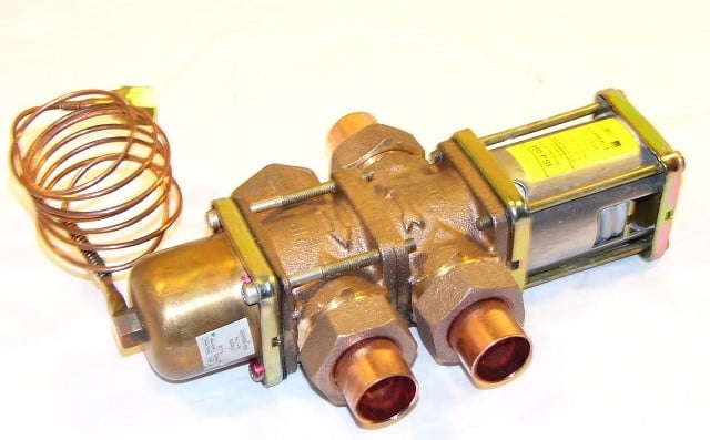 3/4″ union sweat, 145 to 190 PSI Opening Point Range, Three-way Pressure Actuated Water Regulating Valve for Standard Non-Corrosive Refrigerant with 30″ Capillary with 1/4″ Flare Nut (Style 46) Pressure Element